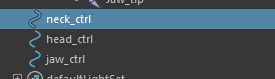 After this i also went about parenting things that weren’t attached to the headto the joint structure so they would still move accordingly, ie the eyes moving with the head, but made sure to tie the teeth to both the head controller for the top row and the jaw controller for the bottom row so they would open properly.