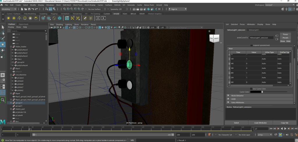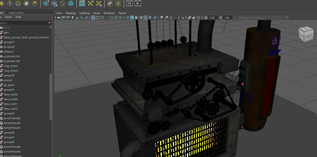 At this point i had my machine and had it modelled, all that was left to do was fix some deformers that kept breaking, and then texture it and animate some small last things.